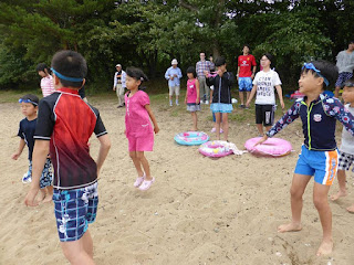 朝食後,みんなが楽しみにしていた猪苗代湖での湖水浴。