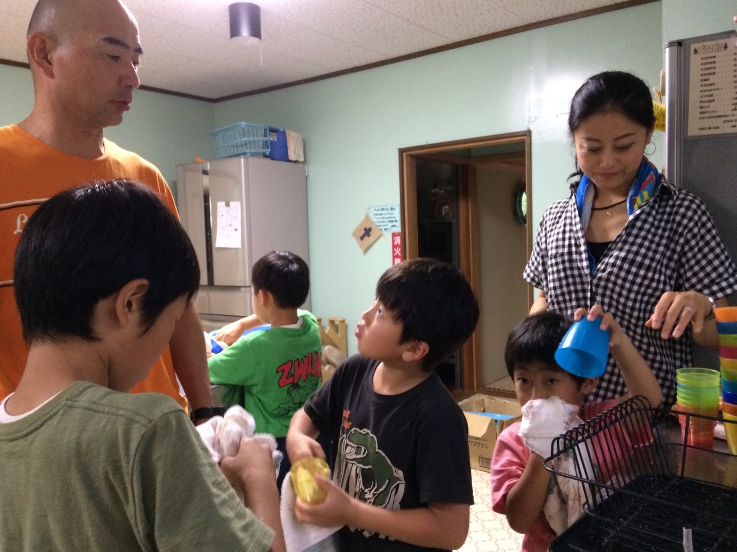 ゲームをしてびしょびしょになった服を着替え,今度は夕食のカレー作り!