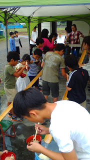 そうめんを取るのも流すのも,子供たちは大興奮でした。