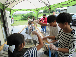 最初は雨がちらついていていましたが,流しそうめんをする頃には青空が広がり,天気にも恵まれた,夏最後のお楽しみ会でした!