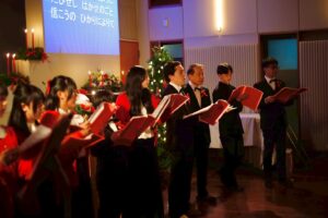 途中のキャンドルサービスでは、皆さんで「きよしこのよる」を一緒に賛美しました。
