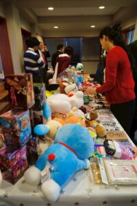 お腹がいっぱいになった後はビンゴ大会。持ち寄った景品はティッシュなどの実用的なものからぬいぐるみ、お菓子などたくさんの種類がありました!