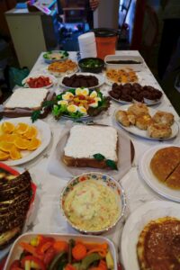 礼拝の後は祝会。持ち寄ったデザート&サラダビュッフェは大好評でした!
