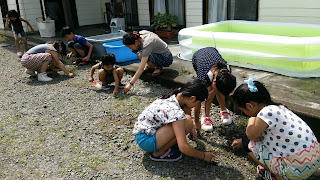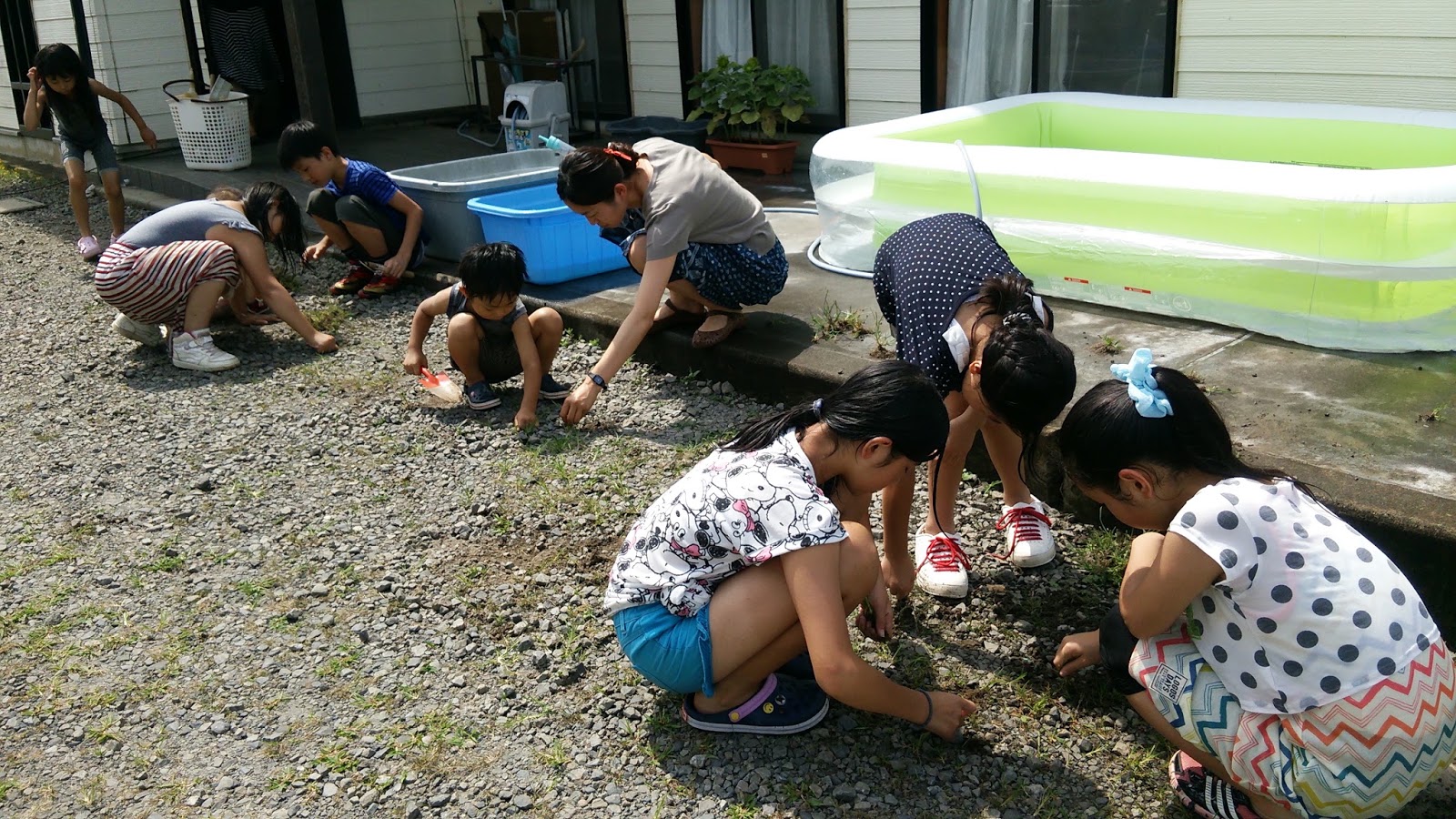 13時半から14時半までの一番暑い時間帯でしたが、水分補給をしながら、プールを楽しみにしながら、草を抜いてくれました。