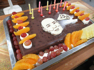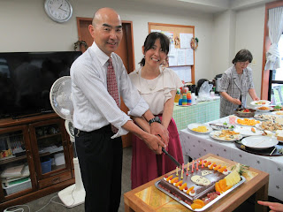 礼拝後の昼食では、サプライズで鈴木牧師の大好きな羊羹のケーキ!