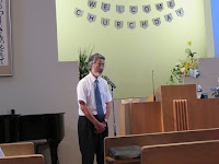午後の記念集会では、鈴木牧師の神学生時代の恩師である西舞子バプテスト教会の表博之先生が、「教会成長の三本の矢」という題でメッセージをしてくださいました。