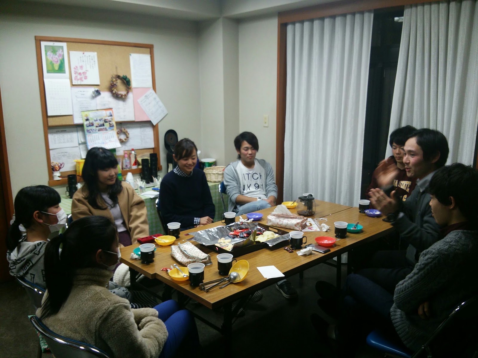 おやつタイムでは,中学校に関する質問に青年メンバーが答えました。