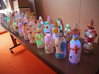 ペットボトルに紙粘土を貼りつけて、間接照明を作りました。