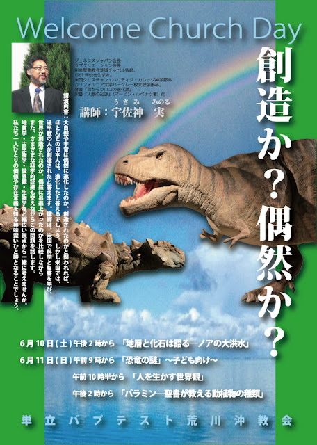 「大自然や宇宙は偶然に進化したのか、創造されたのかと問われれば、ほとんどの日本人は、進化したと答えるでしょう。しかし米国では、過半数の人が創造されたと答えます。講師は、米国で科学と聖書を学び、世界が創造されたのか、偶然に出来上がったのかを比較しながら、また、さまざまな科学的証拠も交えながらこの問題を話します。地質学・古生物学・世界観・生物学など幅広い視点から一緒に考えませんか。私たち一人ひとりの価値や存在意義を知る興味深いひと時となることでしょう。」